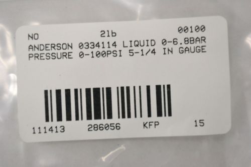 NEW ANDERSON 37-01 A3 LIQUID PRESSURE 0-60PSI 5-1/4 IN GAUGE B286237