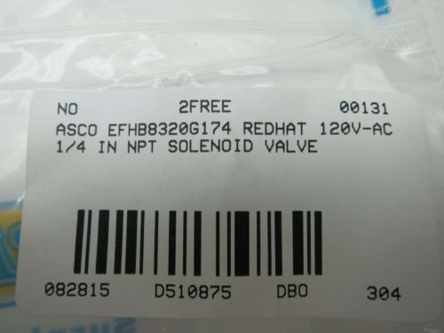 ASCO 8262B208 RED-HAT 1/4" VALVE, NEW