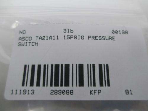NEW ASCO PB10A PRESSURE SWITCH 125/250V-AC 1/8-1/4HP 1/2-1/4A AMP D288734