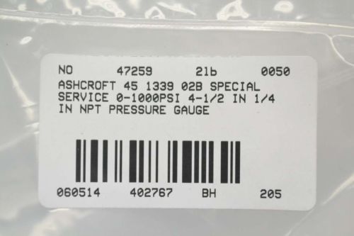 ASHCROFT 60-1038A-02L SPECIAL SERVICE PRESSURE 0-400KPA 6IN DIAL GAUGE B303162