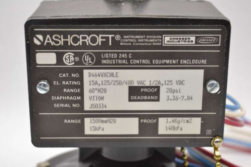 NEW ASHCROFT B464B XCGCHLE PRESSURE 150-IN-H2O 3750MM-IN-H2O SWITCH B479234