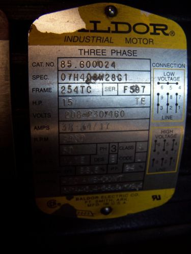 Baldor Industrial 3 Phase Motor 230/460V TB00592 M131611