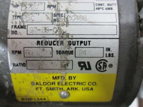 NEW BALDOR GC24306 1/20HP 115V-AC 80RPM BB-0 1PH AC GEAR 20:1 MOTOR D383202