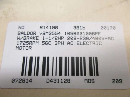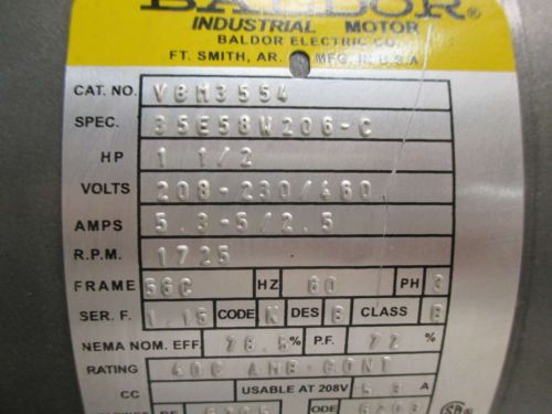 BALDOR MOTOR 34K60-872, 1/2 HP, 1725 RPM, 230/460 V, 3 PH, TE, 56 FRAME