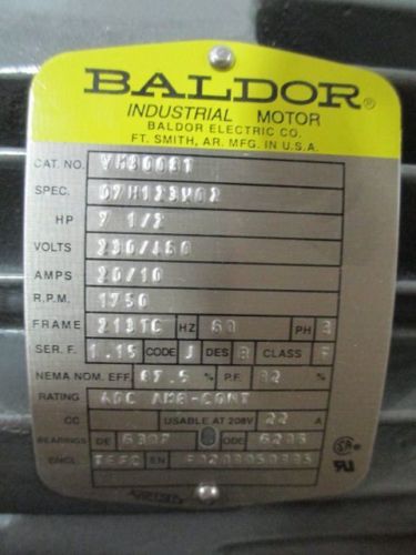 NEW SURPLUS BALDOR MOTOR 7.5 HP 3600 RPM 184T FRAME 208-230/460V TEFC