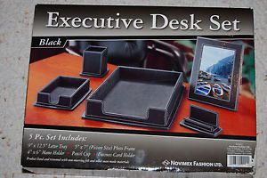 Office Set Supply Tray Pen Holder Executive Work Space Leather Desk Organizer