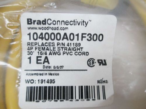 NEW WOODHEAD 104002A01F300 BRAD CONNECTIVITY 4P MALE STRAIGHT CABLE D350679