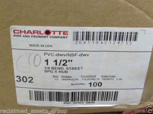 New Charlotte Pipe & Foundry PVC 1 1/2" (1/8 Bend) Case of 100 # 321