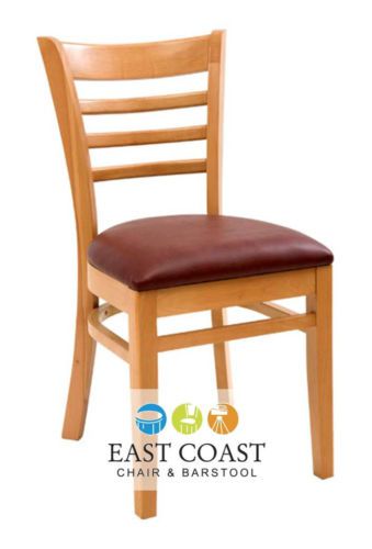 New Wooden Natural Ladder Back Restaurant Bar Stool with Black Vinyl Seat