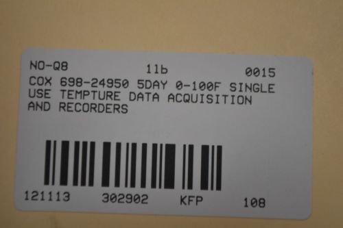 LOT 10 NEW COX 698-24950 5DAY 0-100F SINGLE USE TEMPTURE RECORDER D302920