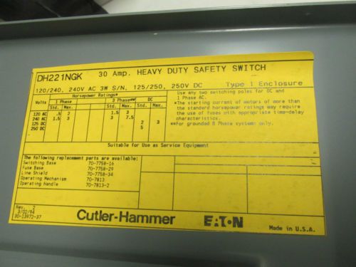 Cutler Hammer DH223NDK 100 Amp Heavy Duty Disconnect Switch