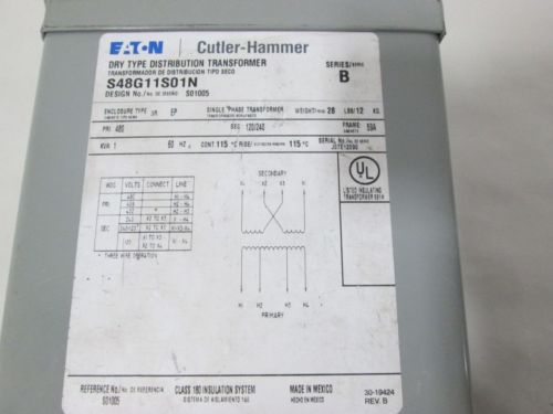 NEW CUTLER HAMMER S48G11S01N 1KVA 1PH 432/456/480V 120/240V TRANSFORMER D333859