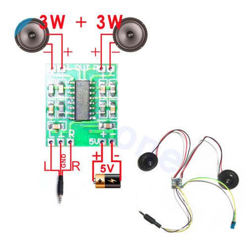 2PCS Mini Digital Power Amplifier Board 3W+3W AMP Module 5V for Arduino