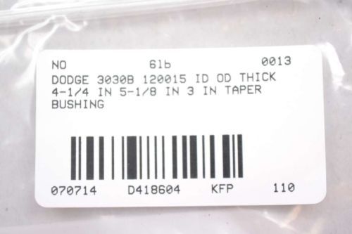 NEW DODGE 3030B 120015 4-1/4IN ID 5-1/8IN OD TAPER BUSHING ADAPTER D418592