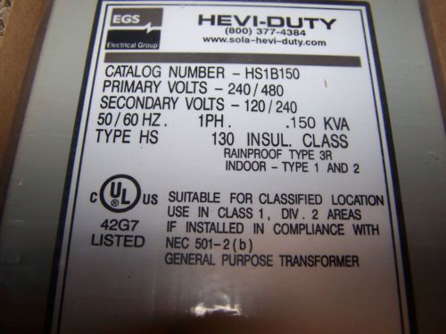 EGS Sola Hevi-Duty E500 SBE Industrial Control Transformer New .500kVA