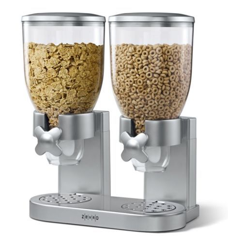 NEW Fun Dual Dry Food Canister Stand With 2 Dispenser Containers In Red Chrome