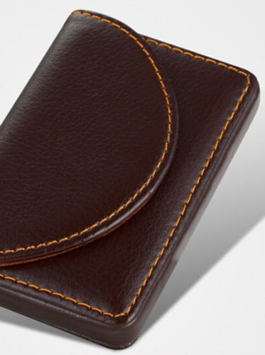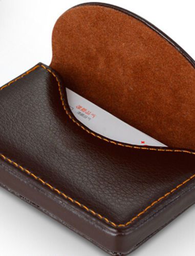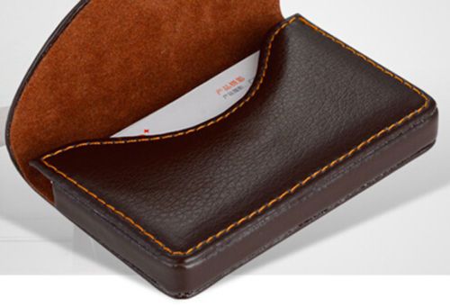 New Gift Stainless Steel Leatherette Business Name Card Holder Case Box Brown