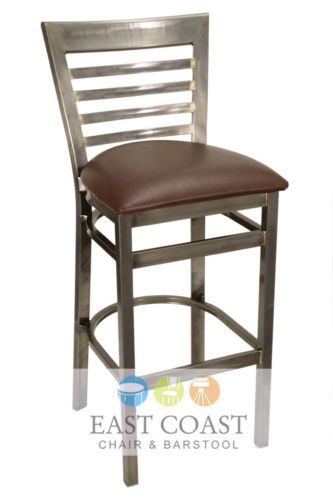 New Gladiator Clear Coat Full Ladder Back Metal Bar Stool with Brown Vinyl Seat