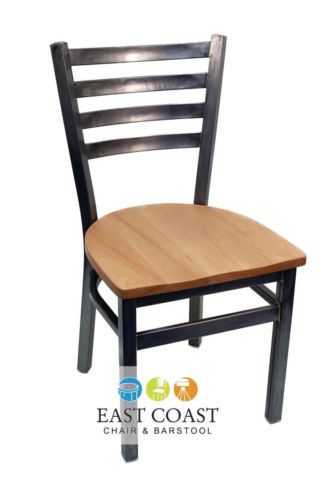 New Gladiator Clear Coat Ladder Back Metal Restaurant Chair, Natural Wood Seat