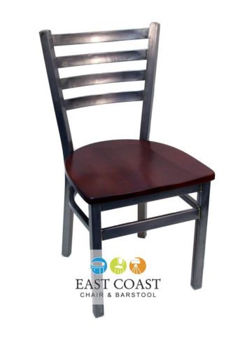 New Gladiator Clear Coat Ladder Back Metal Restaurant Chair, Mahogany Wood Seat