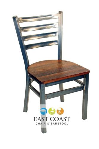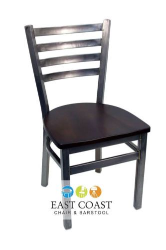 New Gladiator Clear Coat Ladder Back Metal Restaurant Chair w/ Walnut Wood Seat
