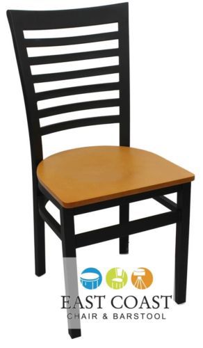 New Gladiator Full Ladder Back Metal Restaurant Chair with Natural Wood Seat