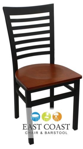 New Gladiator Full Ladder Back Metal Restaurant Chair with Cherry Wood Seat