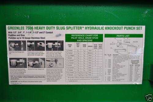 GREENLEE 7506 SLUG SPLITTER HYDRAULIC KNOCKOUT PUNCH 1/2" TO 2" STAINLESS STEEL