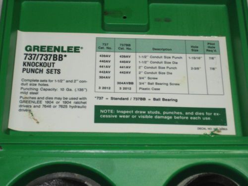 Greenlee Knockout Cutter Punch Set 3/4",1",1 7/32, 1 1/4", 1 1/2" & 2" W/Case