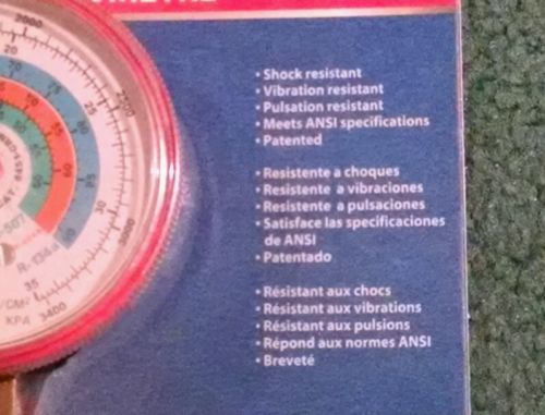 R-22, R-12, R-502, 0-500 PSI Refrigerant Gauge 2 3/4" Face