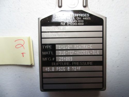 CDC STAINLESS S/S MONEL RUPTURE DISC 1" HPX-90 HPX90 (FS) GAS ONLY 187 PSIG NIB