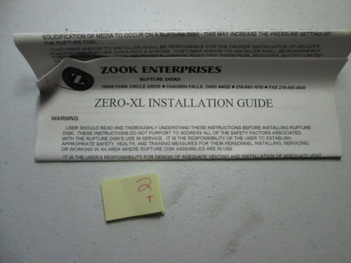 NEW IN BOX ZOOK RUPTURE DISC 298119 1" HX 139 PSIG @ 72F (H4)