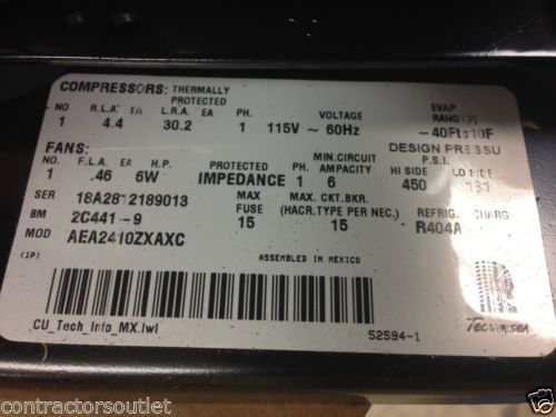 Tecumseh AZA0395YXAEB Condensing Unit Assembly, 115V, 60hz, 1ph, R134A