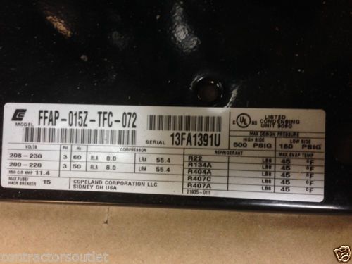 New Indoor 3.5hp Copeland Scroll Low Temp Condensing Unit 208/230V 3Ph R404