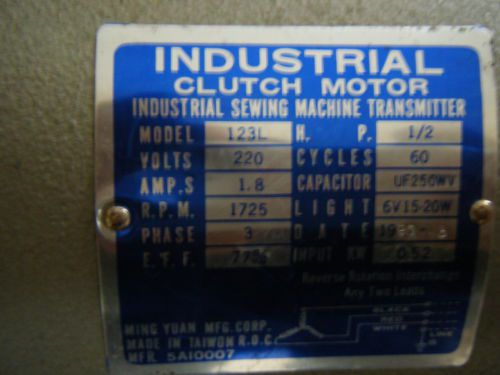 industrial clutch motor sewing machine 110 / 220 volts 3450 rpm