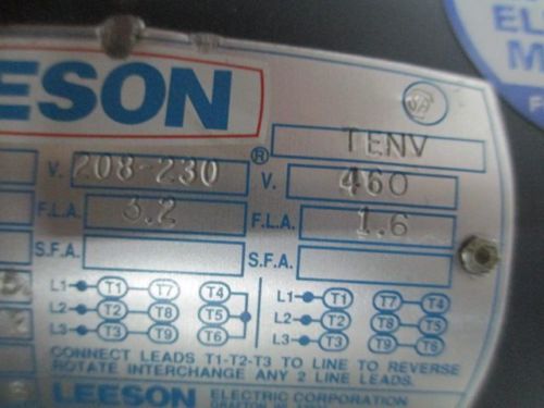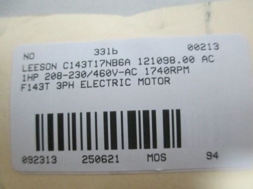 LEESON C6T34FC38A 114207.00 AC 1HP 208-230/460V 3450RPM C56J 3PH MOTOR D250632