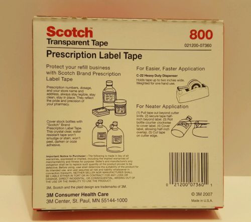 NEW 3M Scotch Prescription Acetate Label Tape 800 1" X 72 Yard