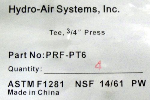 New Lot of 5 Hydro-Pex PRF-PT646 Brass Press Fittings 3/4" x 1/2" x 3/4"
