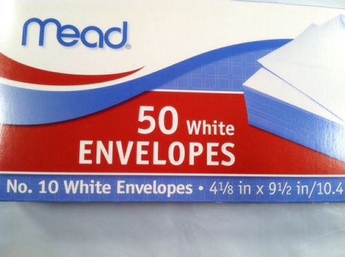 50 No.10 Mead White Letter Mailing Long Envelopes Size: 4-1/8”x 9-1/2”