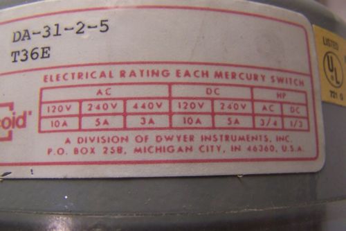 NEW MERCOID PRESSURE SWITCH DA-21-54-12S PRESSURE SWITCH 1500 PSIG 120/240 V