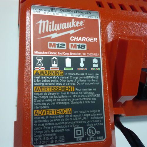 New Milwaukee M12 M18 18v Battery Charger 48-59-1812 12 18 Volt For Drill, Saw
