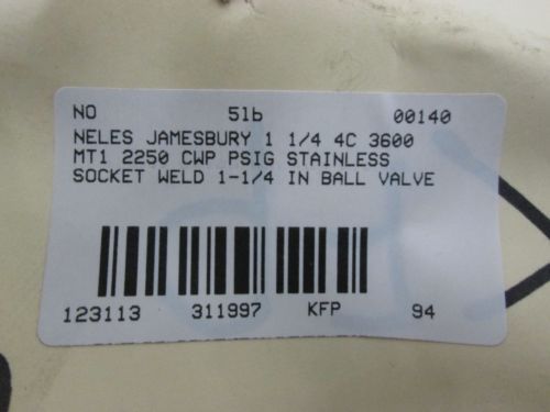 NEW NELES JAMESBURY 1 1/4 4C 3600 MT1 2250 STAINLESS 1-1/4IN BALL VALVE D311994