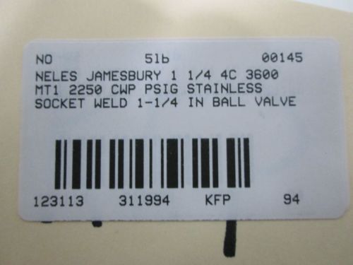 NEW NELES JAMESBURY 1 1/4 4C 3600 MT1 2250 STAINLESS 1-1/4IN BALL VALVE D311997