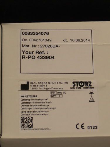Gibsonia , PA 15044 NEW NIB KARL STORZ 27026BA CYSTOSCOPE-URETHROSCOPE SHEATH This listing is for the following medical supplies: 1 UNIT: STORZ 27026BA CYSTOSCOPE-URETHROSCOPE SHEATH. THIS IS NEW AND SEALED IN THE BOX. We are a registered medical device seller. FDA requires all listings in this category to include the following text: The sale of this item may be subject to regulation by the U.S. Food and Drug Administration and state and local regulatory agencies. If so, do not bid on this item unless you are an authorized purchaser. If the item is subject to FDA regulation, we will verify your status as an authorized purchaser of this item before shipping of the item. Seeitsell, LLC, Gibsonia, Pa 15044 412-855-0 one six eight. DISCLAIMER: Regardless of the origin of the equipment or device, documentation provided or identification appearing upon the equipment or device, the equipment or device described and offered here is in no way certified for, recommended for, or offered for any specific use. The purchaser agrees that the seller shall not be held responsible or liable for any injuries or damages, whether incidental or consequential, associated in any way with the equipment or device. The purchaser, by bidding or purchasing on this item, indicates their acknowledgment of, and agreement to the terms of this disclosure Please note that the ship cost includes full postal insurance and a delivery confirmation. If item is high value and you need a signed delivery confirmation, please let me know when you pay for the item. We have been selling on eBay for 10 years and have maintained 100% feedback, so please bid with confidence and let me know if you have any questions. INTERNATIONAL BUYERS—we have changed our shipping policies. We only send by regular, insured Priority Mail. We do not send items by First-Class mail or registed mail or Priority mail flat rate because it is not 100% insurable or trackable. Please only bid if you are willing to pay the Priority Mail rate as shown in the calculator. Payment: Pennsylvania residents must add 6% or 7% (depending on the county) sales tax or send your resale number. Payment to be received within 4 days of auction end. If payment is not received, the item will be automatically relisted. Your bid confirms that you agree with these terms. Thanks! Shipping: Combined Shipping Policy: Depending on the size of the items, we can sometimes offer combined shipping. Please contact us before bidding if you would like to know whether or not we can combine the shipping. International Buyers: We gladly ship some items worldwide. This must be indicated near the top of the auction. Please do not bid if we do not offer worldwide shipping for this particular item. We only ship by Priority Mail. We do not offer First Class as it is not insurable. Please note the following policies: 1. Please use the shipping calculator to calculate shipping before you bid as the cost can sometimes be very high. 2 .WE CANNOT DECLARE A LOWER VALUE ON THE CUSTOMS OR INSURANCE FORM. WE CANNOT MARK YOUR ITEM AS A GIFT. THIS IS ILLEGAL. DO NOT BID ON THIS ITEM IF YOU CANNOT ABIDE BY THIS RULE. We are not responsible for any customs and or brokerage fees you may incur as a result of purchasing our item. Our shipping prices quoted here or through email include only the costs to ship. The buyer is responsible for all customs and or brokerage charges declared or undeclared. Returns: We describe our items to the best of our knowledge. If you consider that we have misrepresented our item, you must contact us within 48 hours of receiving your shipment. We only offer returns if the item was clearly misrepresented--we do not offer returns for buyer's remorse or mistaken bids. We will gladly refund the purchase price paid for the item if it is returned to us in its original shipped condition within 7 days. If item is sold "as is", it cannot be returned. This would be stated in the auction. Thanks again. About Us: Legal: Emily-and-co/SeeitSell,LLC IS NOT THE OWNER OR SELLER OF THESE GOODS, BUT MERELY A BAILEE ACTING ON BEHALF OF THE SELLER TO FACILITATE THE SALE OF THE GOODS BY HOLDING THE GOODS UNTIL SUCH TIME AS A SALE IS COMPLETED AND THE GOODS ARE SHIPPED TO THE BUYER. SeeItSell,LLC WARRANTEES AND REPRESENTS THAT THE GOODS ARE AS THEY ARE DESCRIBED IN THE ABOVE LISTING. WE WILL ACCEPT RETURNS OF THE GOODS ONLY IF THEY FAIL TO MEET THE DESCRIPTIONS ABOVE. SeeItSell, LLC SPECIFICALLY DISCLAIMS ANY IMPLIED WARRANTIES OF TITLE, MERCHANTABILITY, FITNESS FOR A PARTICULAR PURPOSE AND NON-INFRINGEMENT. Some states do not allow the disclaimer of implied warranties, so the foregoing disclaimer may not apply to you. This warranty gives you specific legal rights and you may also have other legal rights that vary from state to state. SeeItSell LLCs ENTIRE LIABILITY TO YOU OR ANY THIRD PARTIES UNDER ANY CIRCUMSTANCE IS LIMITED TO THE SALES PRICE OF THE RELEVANT GOODS AND $100. Some States do not allow the exclusion or limitation of incidental or consequential damages, so the above limitation or exclusion may not apply to you. All text and images in this auction are © SeeItSell LLC. All rights reserved. Powered By SellerVantage, an Inventory and Consignment Software Solution