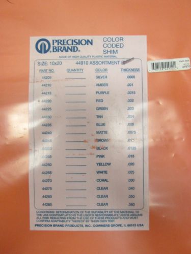 NEW PRECISION BRAND 44670 PRECISION PAK COLOR CODED SHIM 10X20 D405548