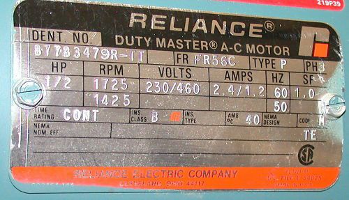 NEW RELIANCE 1/2 HP 3 PHASE AC MOTOR MODEL P56H4840M-UP
