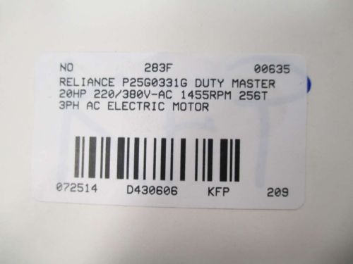 NEW RELIANCE P28G3319H DUTY MASTER XE 15HP 230/460V 1180RPM 284T MOTOR D430825
