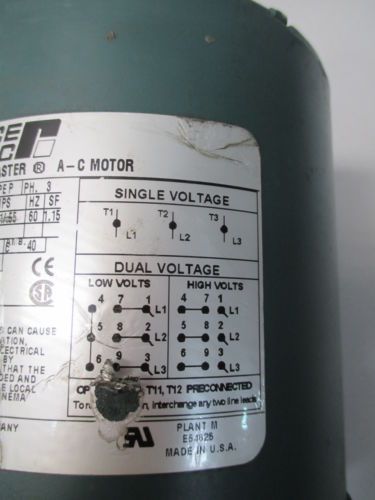 BALDOR 1/3HP MOTOR CAT: VM3534 FR: 56C 208-230/460V 1725RPM 3PH USED