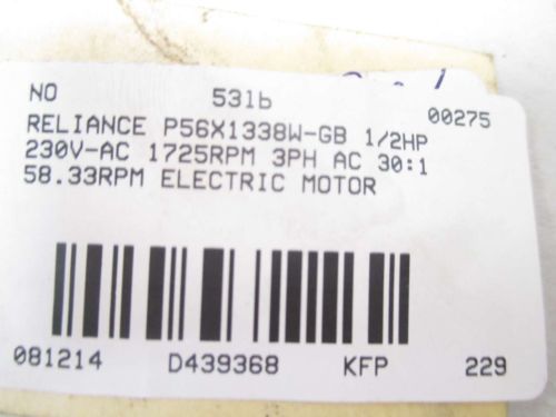 NEW RELIANCE P56X1526R A175S040N000 1/2HP 40:1 43.125RPM GEAR MOTOR D439279