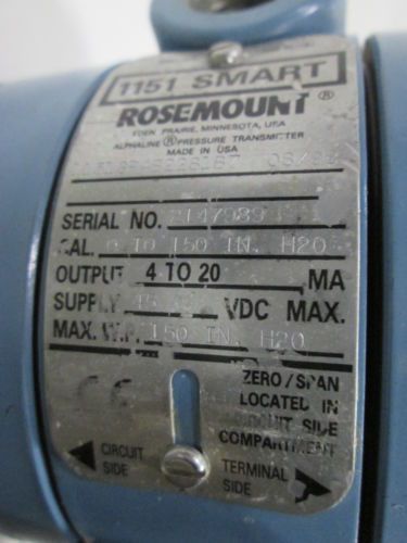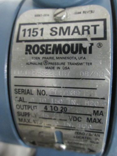 ROSEMOUNT 1151GP4S22S1K5 PRESSURE 45V-DC 0-150IN-H2O TRANSMITTER D352173